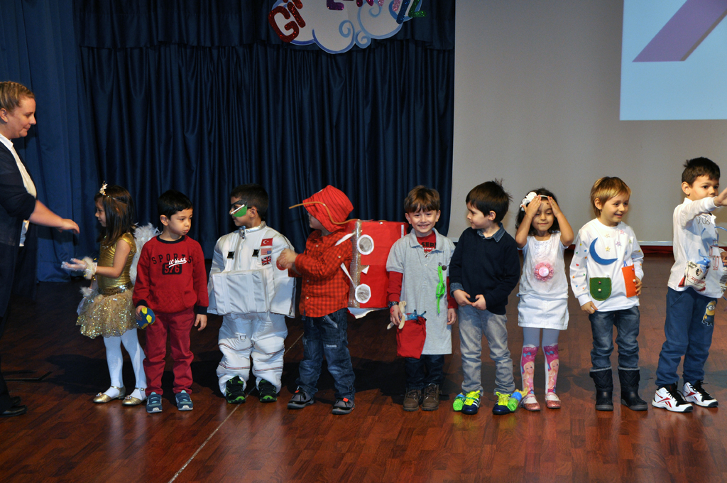 For our “Clothes” unit, we made our students design their own clothes for future to increase their levels of creativity and confidence. They used their limitless imagination. Then, we organized a fashion show to introduce our products to the parents.
