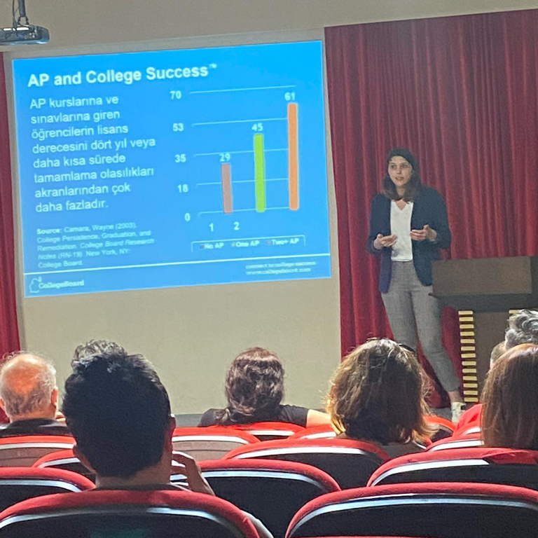 Dünya genelinde üniversiteye geçişte öğrencilere olanaklar sağlayan American College Board üyesi olan okulumuzda, 2022-2023 Eğitim-Öğretim Yılı’ndan itibaren Anadolu ve Fen lisemizde uygulayacağımız Advanced Placement (AP) Programı ile yurt içi ve yurt dışı üniversite eğitim olanakları hakkında bilgilendirme toplantısı yapıldı. AP Koordinatörümüz, AP Yurt dışı Eğitim Danışmanımız, MYP Koordinatörümüz, Rehberlik Koordinatörümüz ve Lise Müdürümüz tarafından gerçekleştirlen sunumda velilerimizin tüm soruları yanıtlandı.