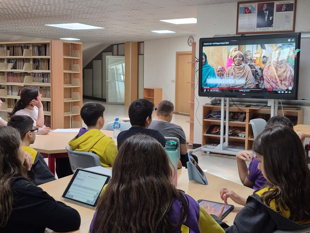 Toplum Hizmeti dersi kapsamında AIP (Acil İhtiyaç Projesi) Vakfı Genel Müdürü Ebru Gültekin ile ortaokul öğrencilerimiz çevrim içi bir buluşma gerçekleştirdiler. Küresel ölçekte açlık ve yoksullukla mücadele eden projeleriyle dikkat çeken AIP Vakfı, çalışmalarını öğrencilerimizle paylaşarak önemli bir farkındalık oluşturdu.