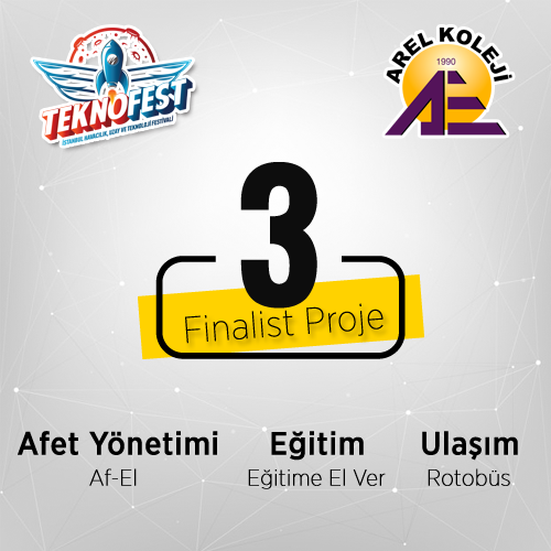 AREL Lisesi Robotik ve Yazılım Kulübü, Uninvited ve Eternal takımlarının üç projesi Teknofest'te finalist olmaya hak kazandı. Afet Yönetimi (Af-El), Eğitim (Eğitime El Ver) ve Ulaşım (Rotobüs) kategorilerindeki projelerini Teknofest boyunca fuar alanında sergileyecek olan öğrencilerimizi ve danışman öğretmenlerimizi kutlar, başarılarının devamını dileriz.
