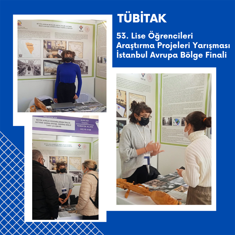 Öğrencimiz Zehra GARİP, Tarih alanında "Ayrılık Rüzgarlarının Trajik Getirisi: Bosna Savaşı Üzerine Sözlü Tarih" konulu projesi ile Marmara Bölge Finalisti olarak seçilen 100 proje içerisinde yer almış ve İTÜ’de sunuma katılmıştır. Öğrencilerimizi ve öğretmenimizi kutlar, başarılarının devamını dileriz.