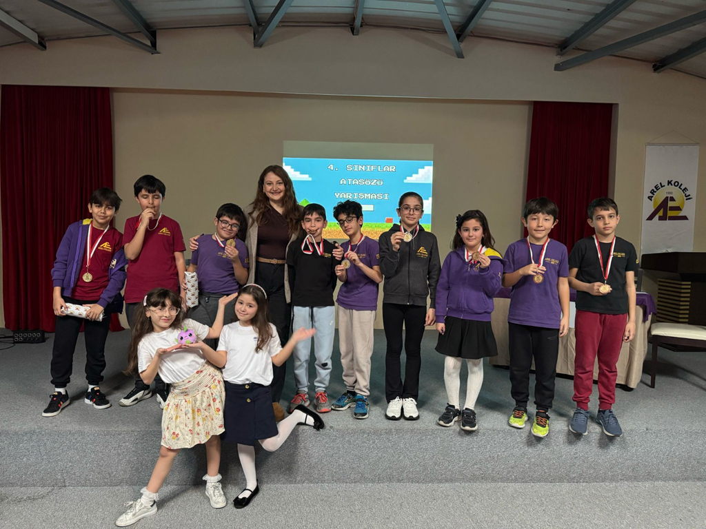 AREL İlkokulu 4. sınıf öğrencileri, öğrendikleri atasözlerini okulda düzenlenen “4. Sınıflar Atasözü Yarışması”nda sergileme fırsatı buldu. Kıyasıya rekabetin yaşandığı bu eğlenceli ve öğretici yarışmada, öğrenciler atasözlerinin anlamlarını pekiştirirken takım çalışması ve hızlı düşünme becerilerini de geliştirdi.
