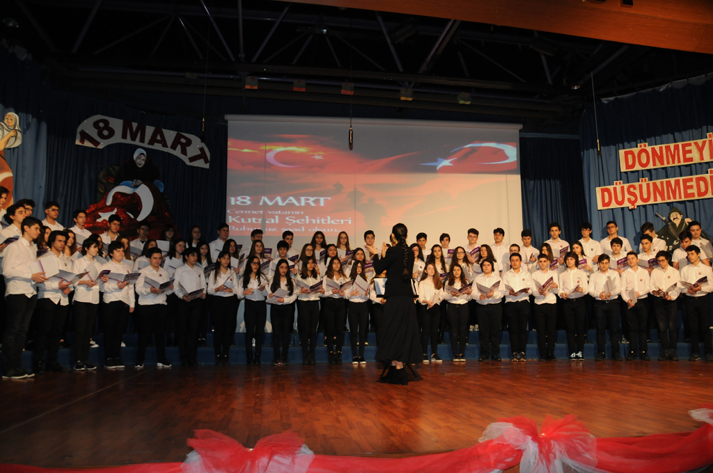 Tarihe destan yazan Çanakkale şehitlerimizi büyük bir törenle andık. Öğrencilerin sunduğu törende koromuzun seslendirdiği türküler, öğrencilerin okudukları şiirler ve canlandırma izleyenlere duygulu anlar yaşattı. Öğrencilerimiz bu anlamlı günde toplumsal farkındalığı güçlendirmek adına “Bir Kitap Aldım Kendime” adlı şarkıyı işaret diliyle söylediler. Törenin sonunda öğrencilerimizin bahçede oluşturduğu ay yıldız görüntüsü büyük alkış aldı.