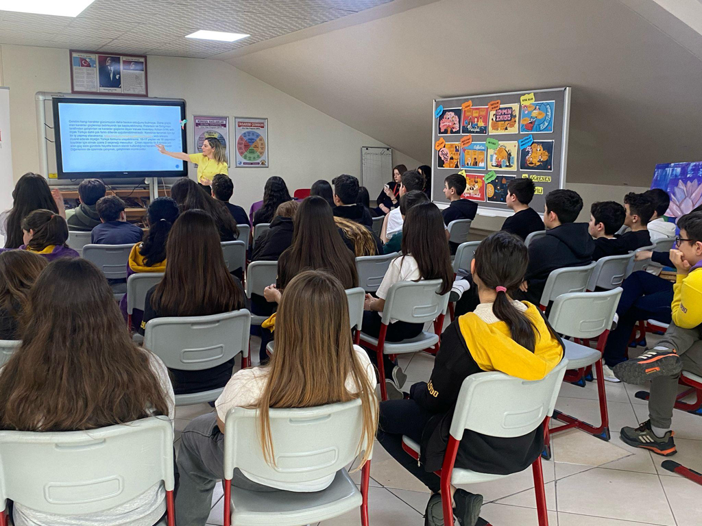 Sınavlara hazırlanırken hedef belirleme, iç motivasyonu güçlendirme ve stresle başa çıkabilme becerileri, akademik bilgi kadar büyük önem taşır. Bu doğrultuda, Klinik Psikolog Hilal Tuğçe Baş tarafından ortaokul öğrencilerimize yönelik gerçekleştirilen “Hedefe Giden Yolda Kendini Fark Etmek” semineri, öğrencilerin sınav sürecinde karşılaştıkları içsel engelleri tanımalarına ve kişisel farkındalıklarını artırarak etkili çalışma stratejileri geliştirmelerine katkı sağladı.