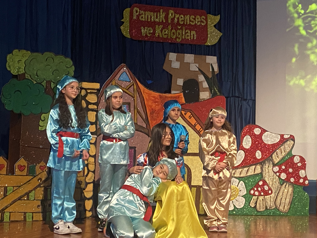 İlkokul Drama Kulübü öğrencilerinin okulumuzda sergilediği "Pamuk Prenses ve Keloğlan" oyunu izleyenlerden büyük alkış aldı. Haftalardır süren yoğun hazırlıkların ardından sahneye konulan bu özel oyun, öğrencilerin gösterdikleri üstün performans ve yaratıcı sahne tasarımıyla büyük beğeni topladı. Oyun sonunda başarı belgelerini alan öğrencilerimiz mutluluklarını aileleriyle paylaştılar.