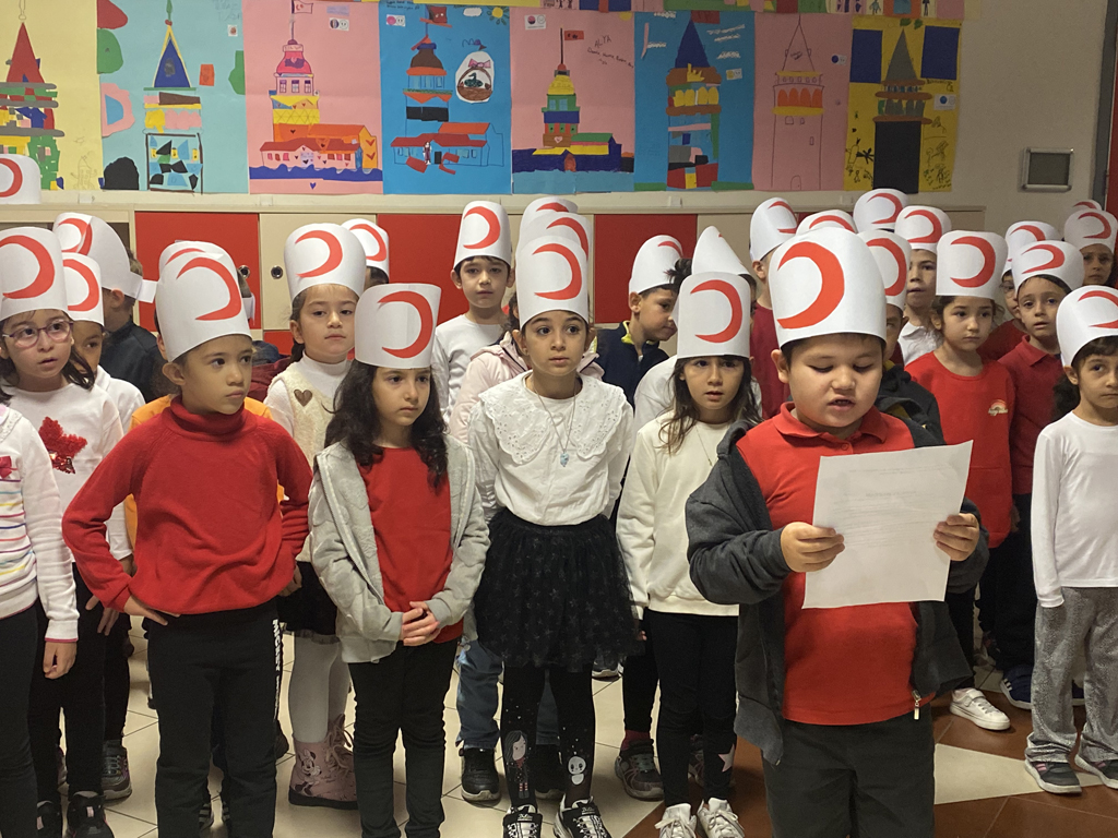 Birinci sınıf öğrencilerimiz 29 Ekim-4 Kasım tarihlerinde kutlanan Kızılay Haftası nedeniyle farkındalık yaratmak için gerçekleştirdikleri etkinlikte günün anlam ve önemini şiir, şarkı ve özlü sözlerle arkadaşlarına anlattılar.