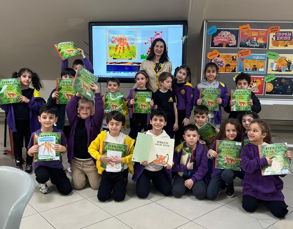 AREL Koleji 1. sınıf öğrencileri, “Afrika’da Kaplan Yoktur” kitabının yazarı Ebru Akkaş ile keyifli bir söyleşide bir araya geldi. Etkinlikte yazar, kitabın ortaya çıkış sürecini ve içeriğini öğrencilerle paylaşarak onlardan gelen soruları büyük bir ilgiyle yanıtladı. Söyleşinin ardından öğrenciler, yazar eşliğinde eğlenceli kaplan çizimleri yaptı. Etkinlik, Ebru Akkaş’ın kitaplarını imzalamasıyla sona erdi. Öğrenciler için hem eğitici hem de ilham verici bir gün oldu.