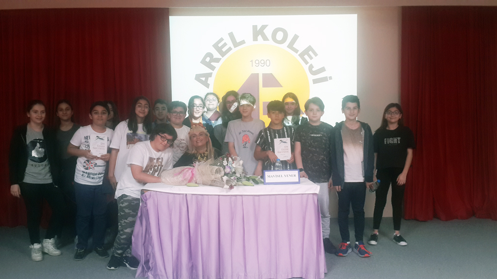 Çocukları şiir sanatında keşfe çıkaran Mavisel Yener, ortaokul 6. sınıf öğrencilerimizle şiir yazma serüvenini anlatan “Şiir Saldım Gökyüzüne” kitabı üzerine hem eğlendiren hem bilgilendiren keyifli bir atölye çalışması gerçekleştirdi. Söyleşi, yazarın kitaplarını imzalamasıyla sona erdi.