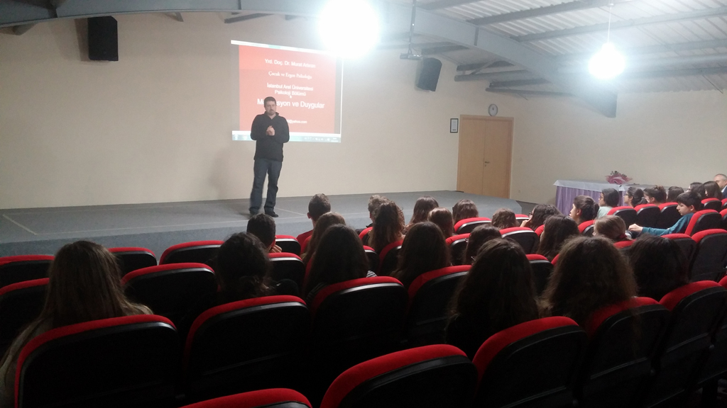 10 Kasım Salı günü AREL Üniversitesi Yrd. Doç Dr. Murat Artıran 8. sınıf öğrencilerimize TEOG sınavı öncesi 'Motivasyon ve Duygular' adlı sunumunu yaptı. Aynı zamanda Çocuk ve ergen psikoloğu olan Murat Artıran sunumunda ilk aşamada duygularımızı tanımlamamız gerektiğini 2. aşamada ise duygularımızı yönetmek için düşüncelerimizi nasıl kullanabileceğimizi bizlerle paylaştı.