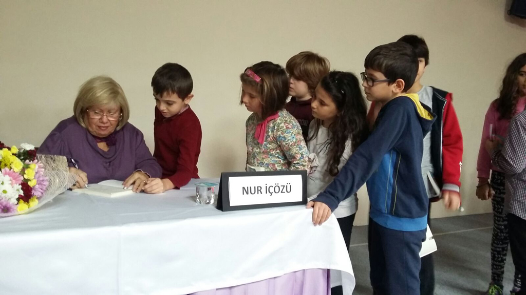 İlkokul Kütüphanemiz tarafından tema kitapları kapsamında okulumuza davet edilen Çocuk ve Gençlik Edebiyatının usta yazarı Nur İçözü, 4. sınıf öğrencilerimizi ülkemizde görülmeye değer yerleri ve hikayelerini oralara gitmeden de tanıma şansı veren Zamanda Yolculuk Serisiyle keyifli bir yolculuğa çıkardı. Yazarın, kitaplarını imzalamasıyla etkinliğimiz sona erdi.