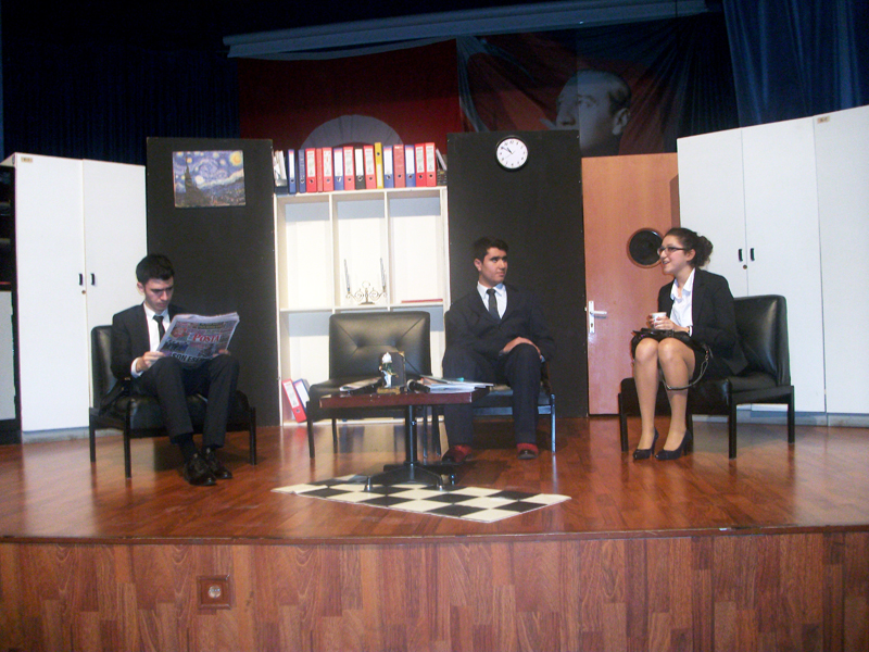 27 Mart Dünya Tiyatrolar Günü nedeniyle lise öğrencilerimizin oynadığı "Bekleme Odası" adlı tiyatro oyununda konuk sanatçımız ünlü tiyatro ve dizi oyuncusu Arda ESEN'di.