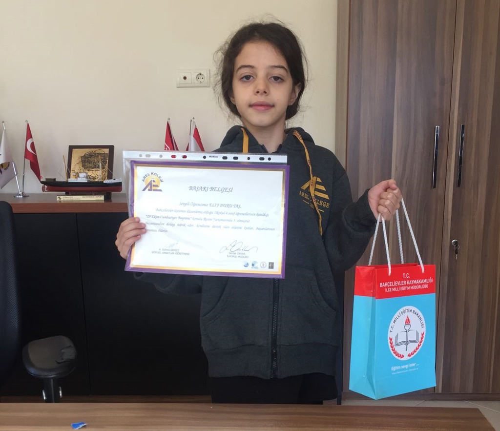 İlkokul 4.sınıf öğrencimiz Elif Duru Taş İlçe Milli Eğitim Müdürlüğü'nün düzenlediği 29 Ekim Cumhuriyet Bayramı konulu resim yaşımasında İlçe Üçüncüsü oldu. Öğrencimizi kutluyor, başarılarının devamını diliyoruz.