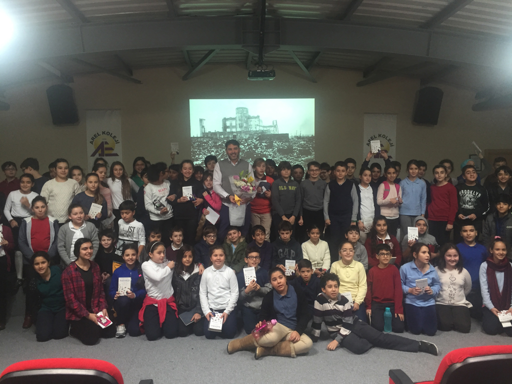Tiyatro Sanatçısı Özgür Özgülgün, 5. sınıf öğrencilerimiz ile gerçekleştirdiği “Atölye Çalışması”nda Sadoko'nun umut, cesaret ve hüzün dolu hikâyesini anlattı. Öğrencilerimizin okudukları romanla ilgili yorumları ve sorularıyla renklenen çalışmamız sonunda hiçbir zaman umudumuzu kaybetmememiz gerektiğini ve savaşların insanlık için ne kadar kötü olduğunu bir kez daha anladık.