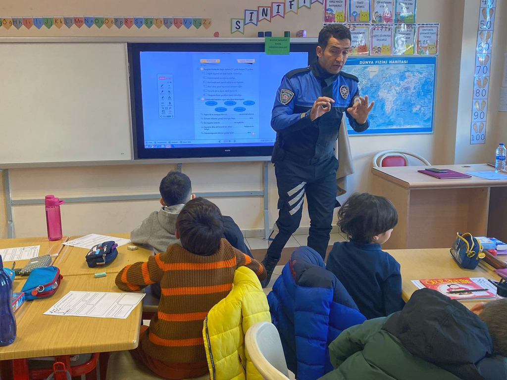 2.sınıf öğrencilerimizi "Trafik" adlı PYP Sorgulama Üniteleri kapsamında bilgilendirmek amacıyla okulumuza gelen polis memurlarımız trafik kuralları ve güvenli geçiş yerleri hakkında verdikleri bilgilerin yanı sıra yaşanabilecek tehlikeli durumlarda yapılması gerekenleri de öğrencilerimize anlattılar.