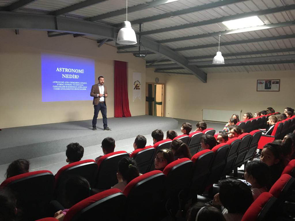 First Lego League takımımızın konusu olan Uzay hakkında bilgi edinmek üzere Uzayperest firmasından okulumuza konuk olan İlhan Eren Diker, 4. Sınıf öğrencilerimize de uzay mühendisliği ve astronomi ile ilgili sunum yaptı. 4. sınıf öğrencilerimiz uzayla ilgili merak ettikleri soruları sordular. Aynı zamanda First Lego League takımımız yarışma için tasarladığı ay üssü hakkında da bilgiler verdiler. Öğrenciler karşılıklı fikir alışverişi yaparak ay üssü tasarımlarını daha iyi nasıl yapılabilir üzerine konuştular.
