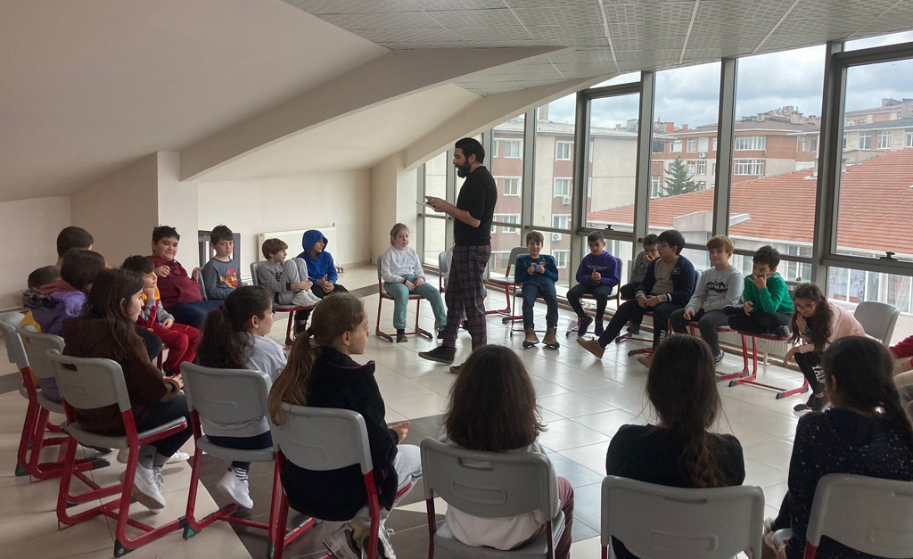 4. sınıf öğrencilerimiz; De/Da Ailesi: Tuhaf Bir Yazım Kuralı yazarı Alp Gökalp ile keyifli bir etkinlik gerçekleştirdiler. Değerli yazarımız Alp Gökalp dil kurallarını öğrencilerimize oyunlarla anlatarak ardından da kitabın alt metnine yerleşmiş olan ‘komşularımızı ne kadar tanıyoruz’ sorusuyla tanımadıkları arkadaşlarının en sevdiklerini tahmin ederek cevaplamaya çalıştılar. Bu güzel etkinlik için yazarımıza teşekkür ediyoruz.