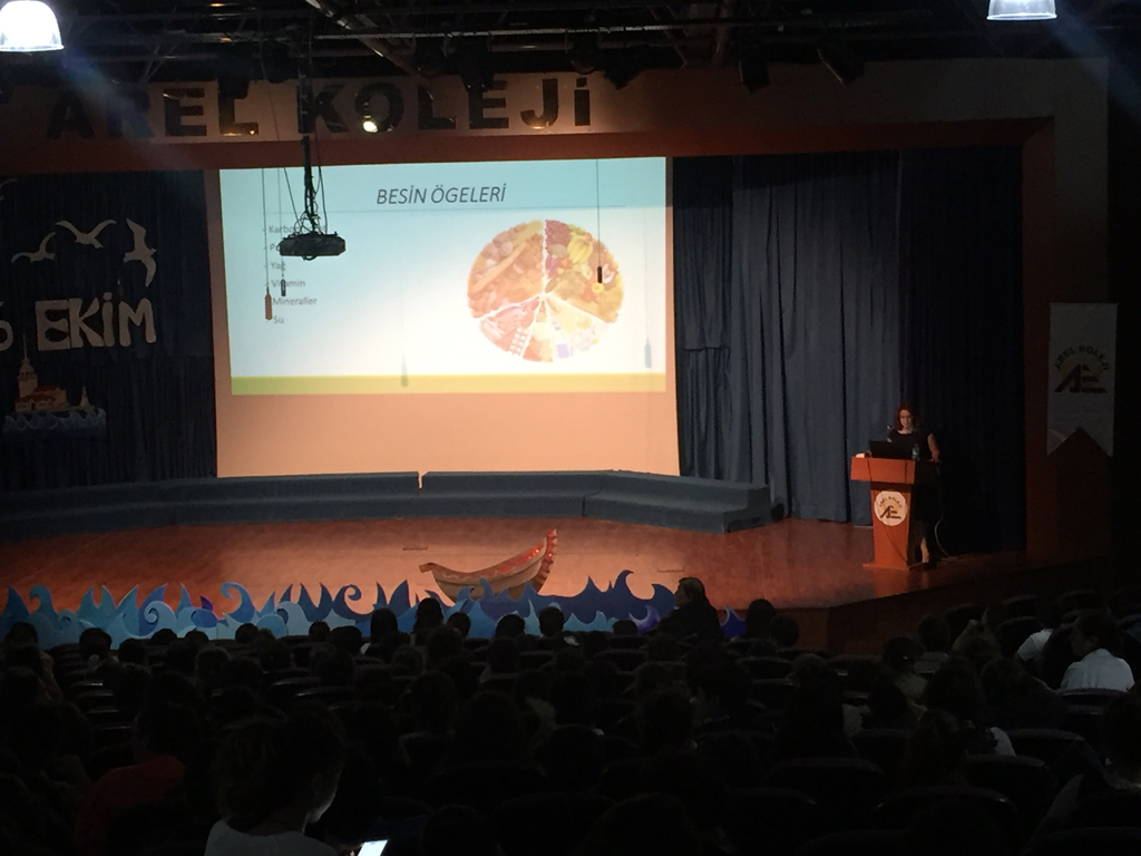 Okulumuzun ilkokul ve ortaokul öğrencilerine Arel Üniversitesi öğretim görevlisi Yard. Doç. Dr. Özlem Persil ÖZKAN tarafından "Yeterli ve Dengeli Beslenme" semineri verildi. Öğrenciler tarafından oldukça ilgi gören seminerde konuğumuz öğrencilerimizin tüm sorularını yanıtladı.