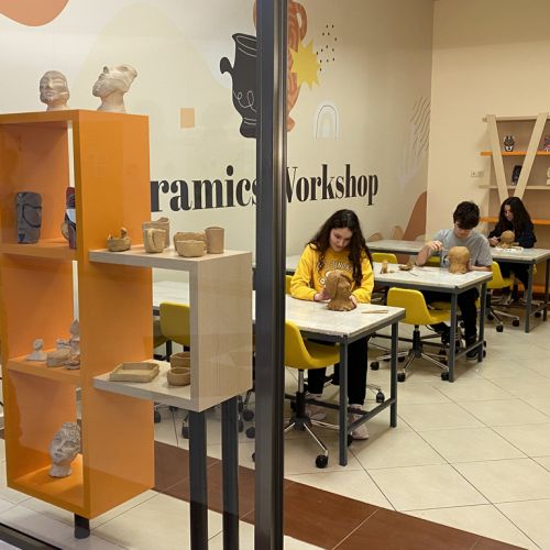 AREL Koleji Seramik Atölyesi, öğrencilerin yaratıcılıklarını keşfetmeleri ve el becerilerini geliştirmeleri için özel olarak hazırlanmış ilham verici bir öğrenme alanıdır. Bu atölyede öğrenciler, tasarımın temel ilkelerini öğrenerek hayal güçlerini somut eserlere dönüştürme fırsatı bulurlar.