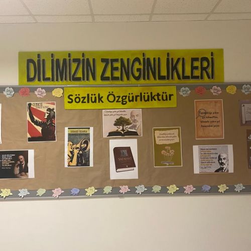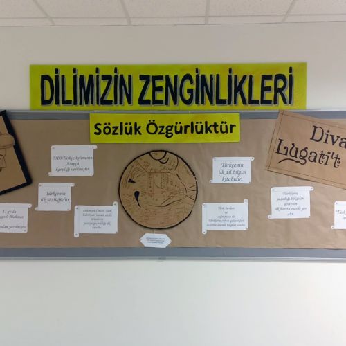 “Dilimizin Zenginlikleri” Projesi kapsamında ocak ayı çalışmaları “Dîvânu Lugati’t Türk” adlı eserle yapılmıştır. Türkçenin ilk sözlüğü olan eser ile ilgili pano çalışması yapılmış, eğitici video içerikleriyle de öğrencilerimizin eseri tanımaları amaçlanmıştır.