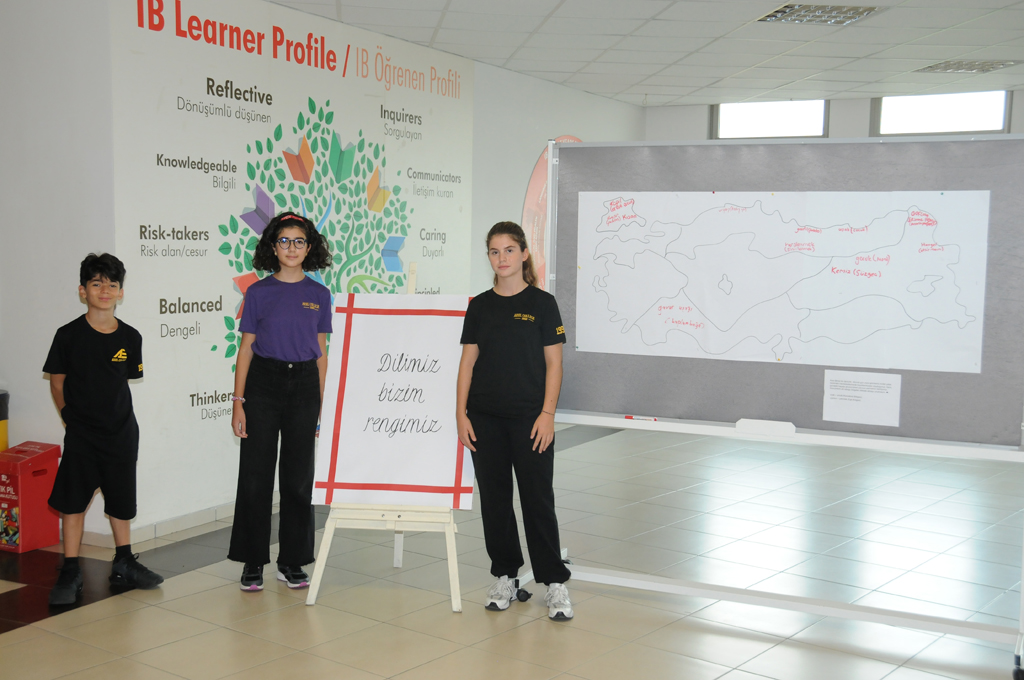 Ayrıca “Dilimiz Rengimizdir” etkinliğinde de doğdukları yörelere ait sözcükleri araştırdılar ve haritada o bölgelere yazdılar.